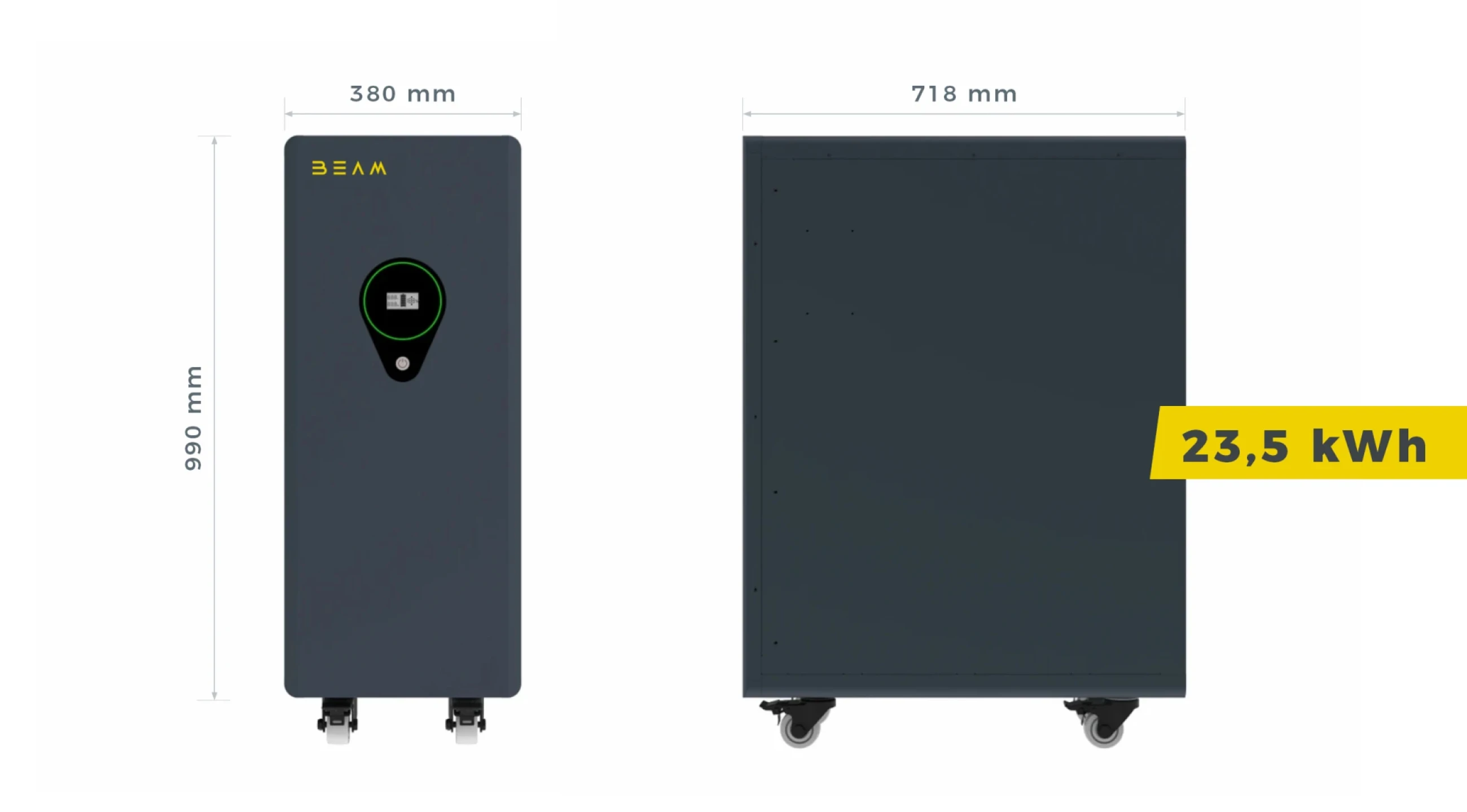 Der Stromspeicher dieser Serie verfügen je nach Ausführung über eine Speicherkapazität von 12,5 kWh, 15 kWh oder 23,5 kWh. über eine Kapazität von 10kWh, bei Bedarf können insgesamt bis zu 16 BEAM Premium LV Batterien in Pararallelschaltung betrieben werden und so im Verbund ein Speichervolumen von 160 kWh bereitstellen.